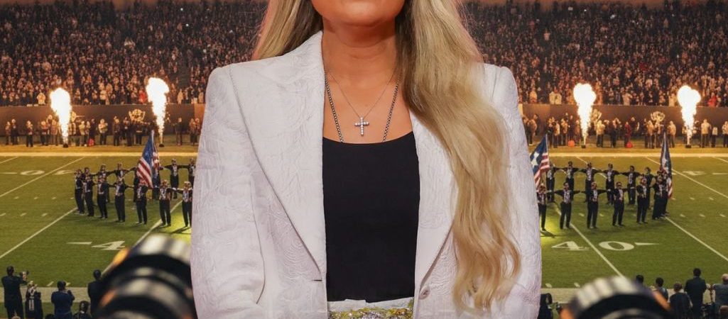 Her words cut through the noise like a hymn in a hurricane. Behind her, the stage glowed in red, white, and blue. The choir began to sing “Amazing Grace,” joined by a symphony of voices — children, veterans, and country stars alike — as the stadium, once deafening, fell completely still. For the first time in years, the Super Bowl audience wasn’t just watching a show. They were feeling something real.